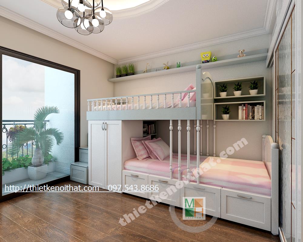 Phòng ngủ cho 2 cậu sinh đôi với thiết kế giường ngủ gỗ sản xuất từ xưởng gỗ Morehome