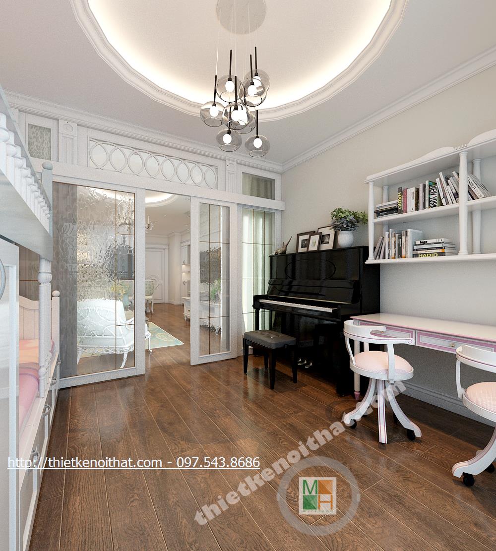 Phòng ngủ nhỏ xinh của bé gái với thiết kế nội thất gỗ trắng tinh tế