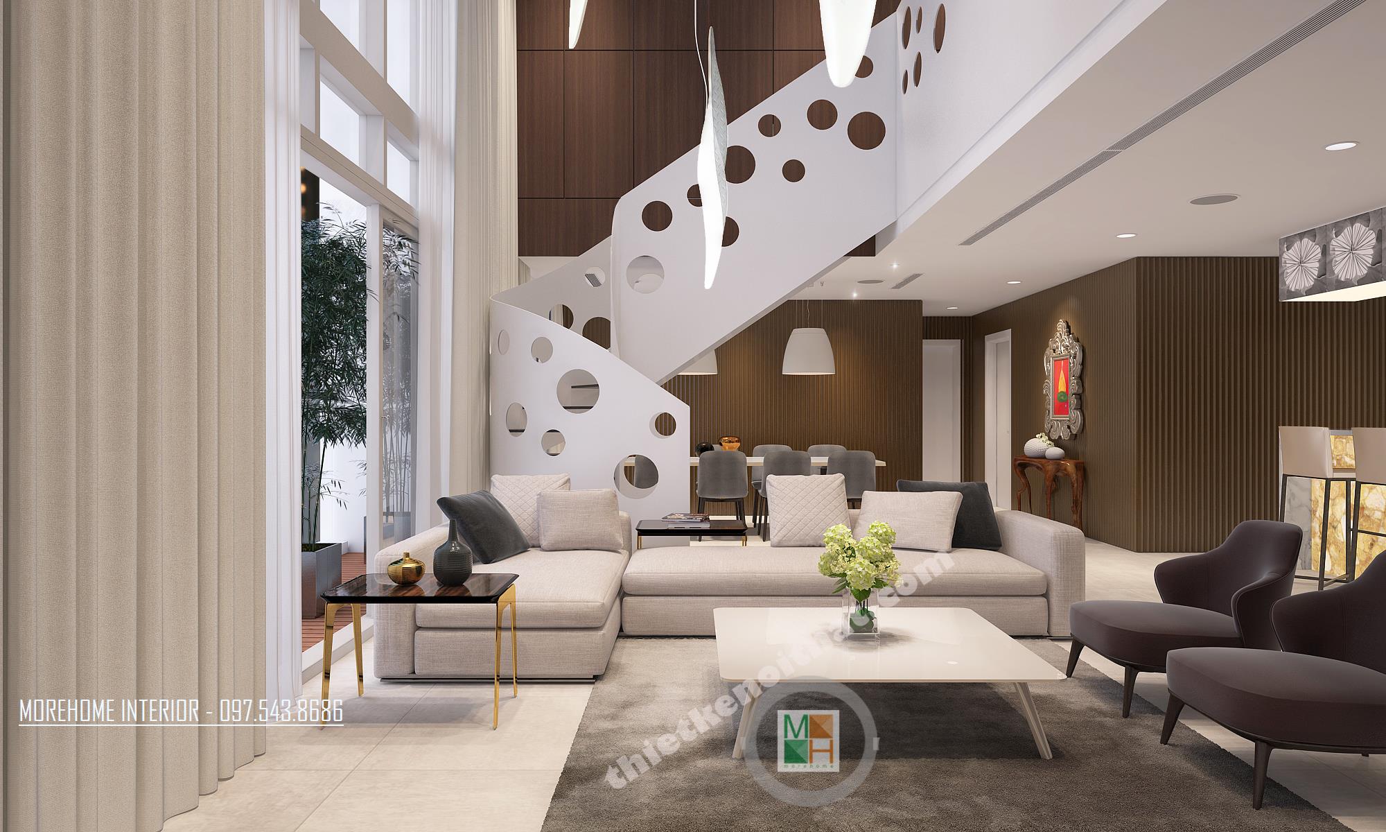 Tiếp đến là việc chú ý tới màu sắc, phong cách thiết kế hiện đại cần có sự phối hợp hài hòa giữ không gian với màu sắc, gam màu được sử dụng nhiều thường trang nhã và nhẹ nhàng. Nếu sử dụng màu tối gây cảm giác nặng nề và không thân thiện cho khách, những không gian phòng khách hẹp công ty thiết kế nội thất Morehome sẽ giúp bạn tư vấn cụ thể nhất để khắc phục yếu điểm này và mang lại không gian như bạn mong muốn.